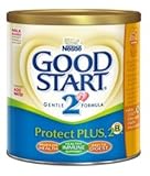 My 1st son switched from formula to whole milk @ 12 months with no trouble. But my younger son was not ready! He's not picky so he drank the whole milk (lactose-free) but it did a number on his tummy. I thought about keeping him on infant formula but it's not rally ment for toddlers. Since both my boys took the Good Start infant formlua I knew it was a brand I could trust. With Good Strat 2 my son could digest it with no problems. The taste was gross to me he did not care for it much either. My mother in-law told me about adding drop of dark corn syurp...(to cut/sweeten the gross taste and also its good for keeping children regular they used it back in the a lot she said) it made a ton of differance and it made it more creamy. I looked on the infant formula and it already has corn syurp in it so I fig. it wouldn't hurt to add a drop and the syurp is soo think a drop is plenty. She also told me I could use a drop of honey since he was a year old. Now my son chuges it right down! He's 14 months now and takes cows milk and Good Start 2 mixed together. Moms if your little one had a bad reaction to whole milk try to ween them around 14 months to give their tummy's time to ajust the Good Start 2 helps soo much with the transistion too.Get more detail about Gerber Good Start 2 Protect PLUS, Powder, Case Pack, Six - 24 Ounce Cans (144 Ounces).